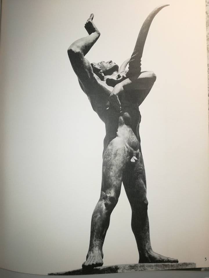 Trabalho escultórico da autoria do mestre Joaquim Correia, representa a obra que serviu para a tese apresentada pelo artista no final do seu curso de Belas Artes.